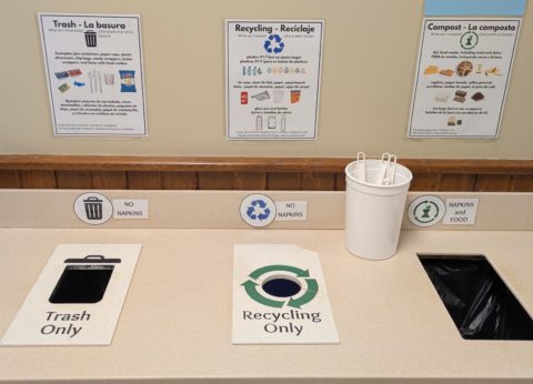 - Purchase 100% recycled napkins, paper towels, toilet paper, and tissues and office paper.