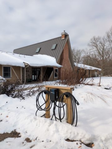 Guests can charge their EVs for free at any of our eight level 2 electric vehicle plugs around Camp. Donations are appreciated but not required for the use of the chargers.